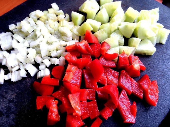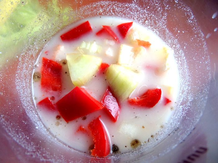 Берём овощи...,по кусочку.