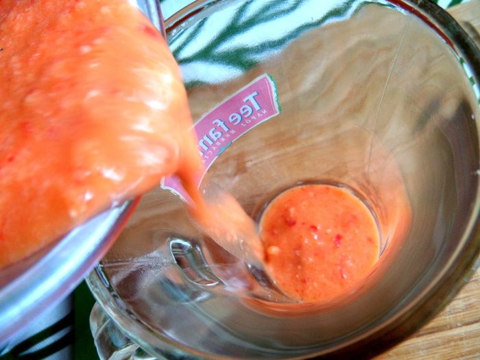 Взбиваем блендером и разливаем по небольшим стаканчикам.