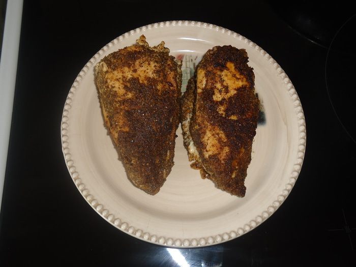 Получившуюся смесь рассыпаем по столу и обваливаем куриные грудки в этой смеси со всех сторон хорошо.