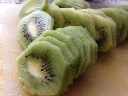 Киви порезать кружочками.
