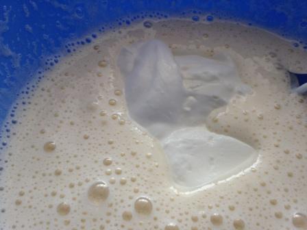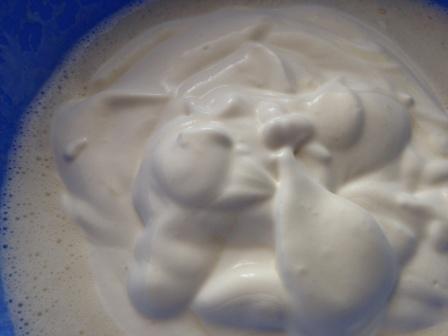 Взбить сливки, добавить к заливке. Тщательно перемешать.