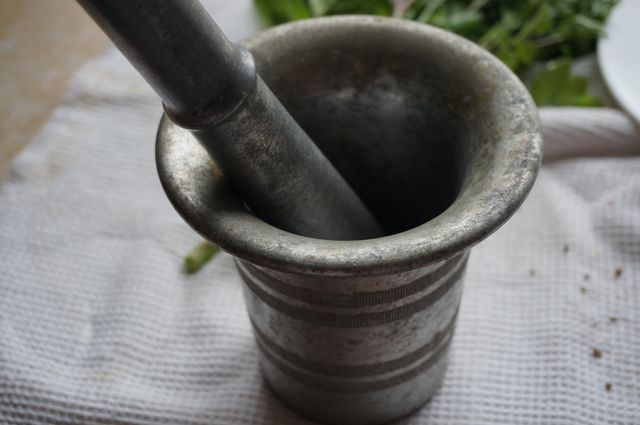 Растереть зерна в ступке, добавить кардамон (если уже молотый).