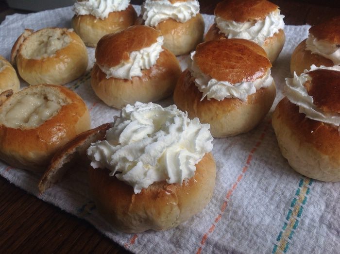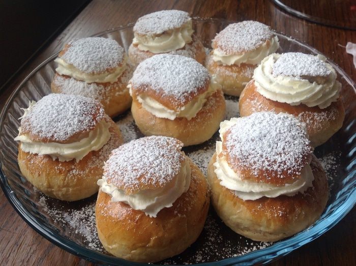 У шведов есть один очень вкусный обычай, на протяжении февраля месяца поедать воздушные булочки семлы, начинённые сливочным кремом, традиция приготовления которых берёт своё начало от «жирного вторника» - последнего вторника перед Великим постом. Изначально это были простые сдобные булочки, подававшиеся в горячем молоке, так называемые хетвэги (hetvägg).Потом решили преукрасить булочку семлу взбитыми сливками и марципаном. Получилось так вкусно, что они стали лакомиться этой булочкой каждый вторник в течение всего периода от Масленицы до Пасхи, превращая таким образом «жирный вторник» в настоящий «жирный февраль»!!!)и примерно до конца марта,можно их купить ....но позже уже не найдешь...токова традиция....
