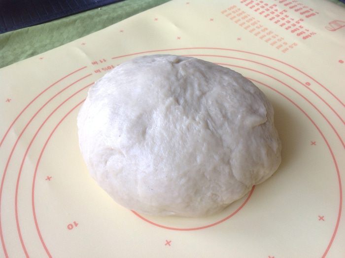 Затем добавляем муку ....замешиваем тесто и вымешиваем...тесто получается очень гладкое и нежное...присыпать мукой и поставить в миске(закрыть полотенцем)в теплое место на 30-50 минут.