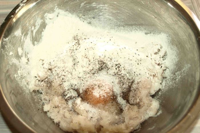 Филе трески ТМ «Магуро» измельчить в мясорубке или блендере. Добавить яйцо, соль, перец, муку.