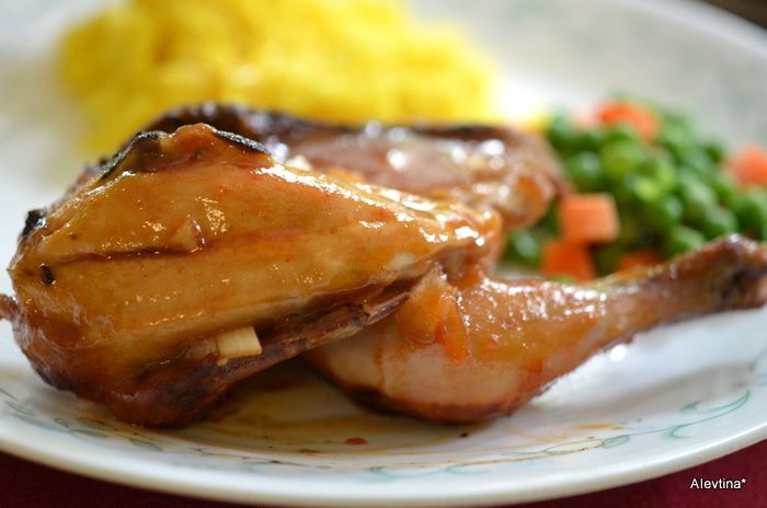 Используем 1 стакан соуса. Обмазываем со всех сторон кисточкой птицу.