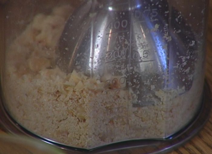 Фундук измельчить в блендере в мелкую крошку.