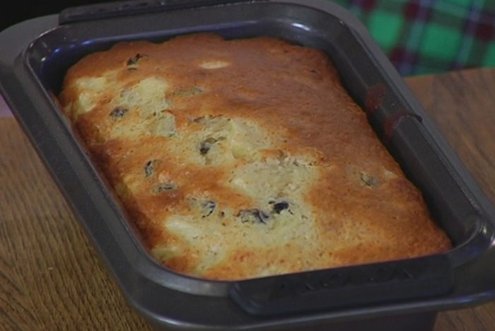 Форму для кекса смазать оливковым маслом, выложить тесто, разровнять его и выпекать в разогретой духовке 25–30 минут.