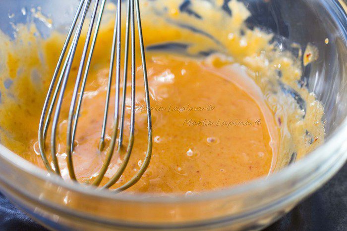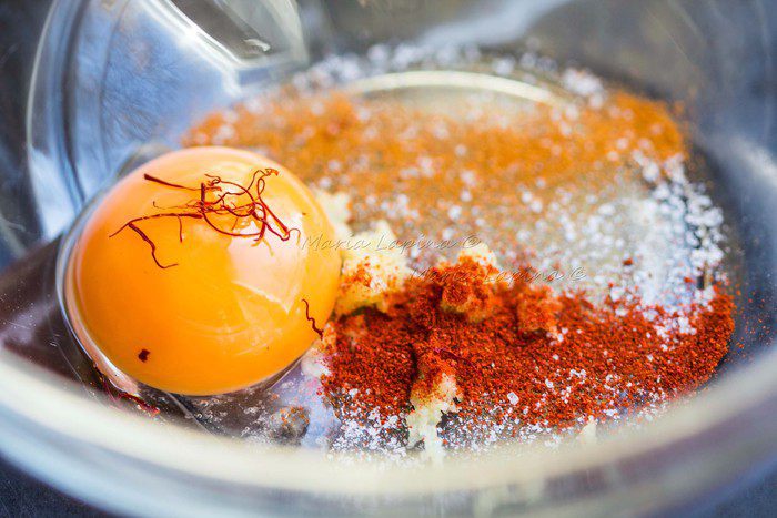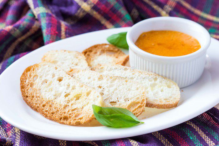 Буйабес принято подавать с подрумяненным багетом и соусом руй. Соус руй очень похож на майонез, только с добавлением шафрана, перца и чеснока. Безумно вкусный! Гренки макают в этот соус и закусывают ими суп, мммм!