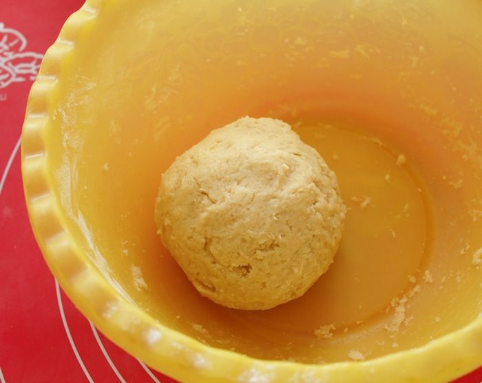 Выложить тесто в форму 22 см (форму смазывать не нужно), разровнять руками.