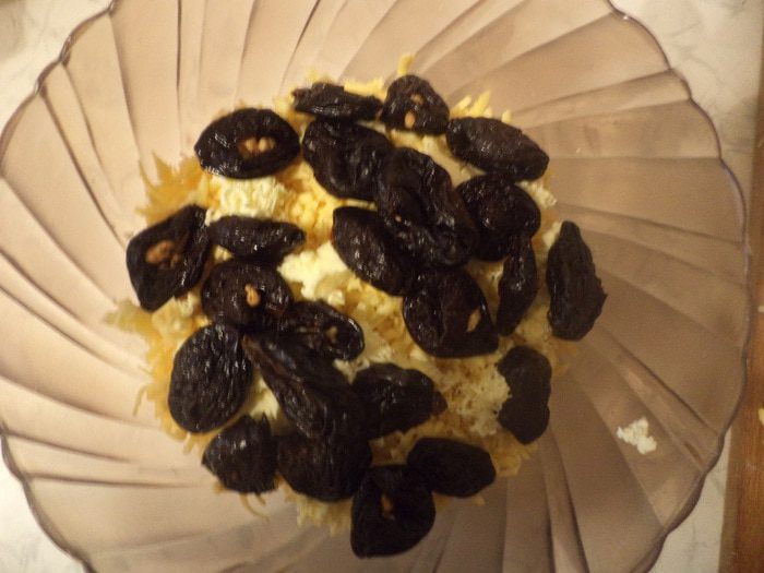Смазать майонезом, присолить. украсить половинками грецких орехов.