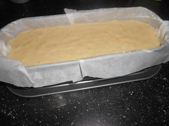 Перекладываем тесто в форму.Форма может быть продолговатой как для английского кекса или 22 см.