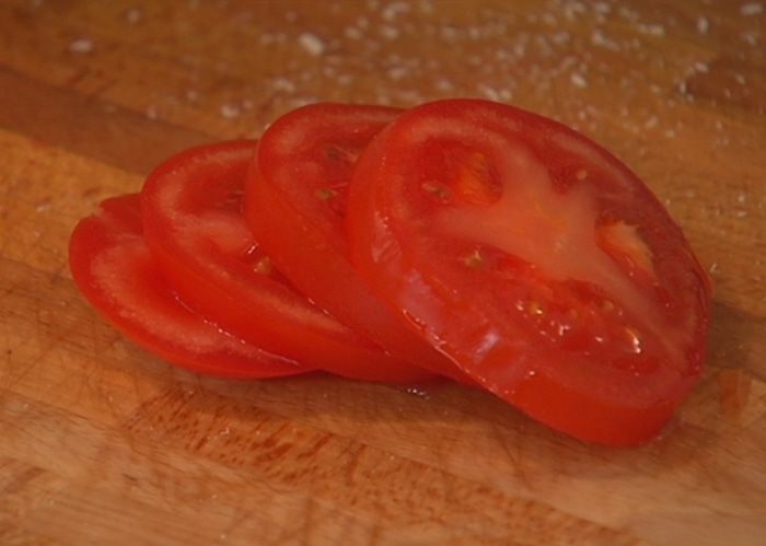 Помидор нарезать кружками.