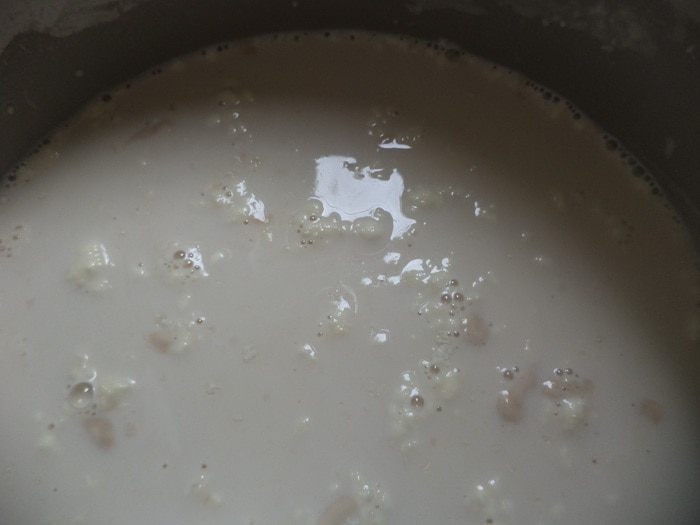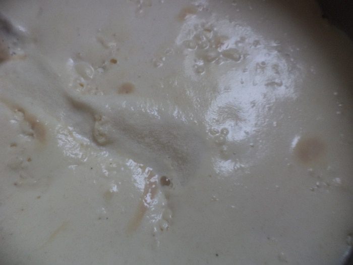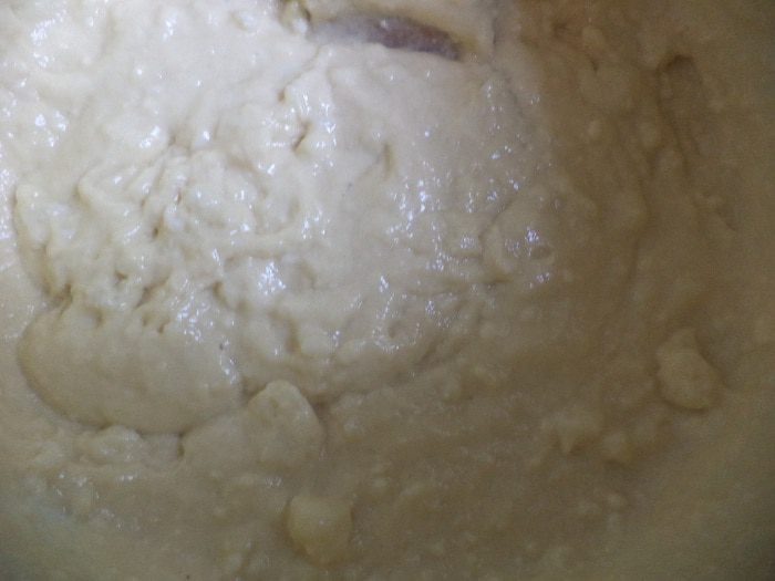 Обе смеси соединить, тщательно перемешать. Если сложго избавиться от комочков, воспользуйтесь миксером. Накрыть полотенцем и оставить на 1 - 1,5 часа.