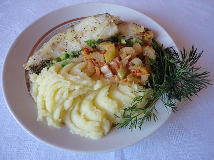 Подавать с картофельным пюре и зеленью.