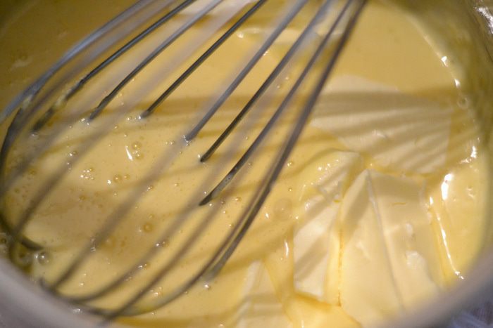 Добавить к остывшей смеси и венчиком взбить.