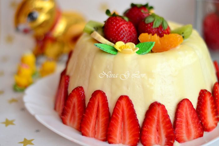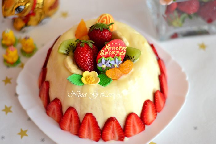 Можно залить верхушку белым шоколадом, серединку засыпать фруктами, украсить также фруктами и бока.