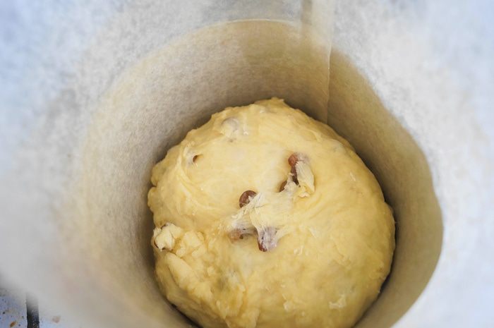 Подготовить формы. Застелить их бумагой для выпечки, промазанной растительным маслом. Заполнить формы на 1/3 и поставить в теплое место минут на 30 подходить. Поставить выпекать в духовку разогретую до 170 градусов на 40-60 минут (в зависимости от размера).