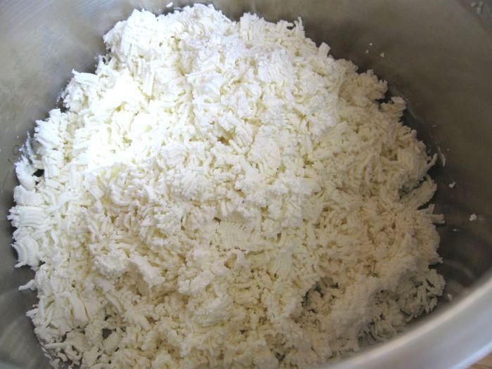 Два раза протереть творог через сито.