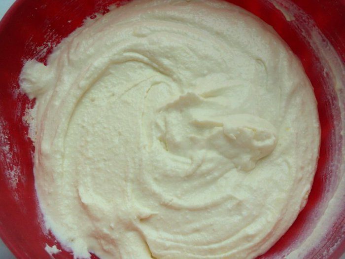 В мягкий творог (у меня домашний) добавить сахар, ванильный сахар, сметану, яйца, белок, манку и 0.5 пачки пудинга и хорошо перемешать погружным блендером до однородной массы.