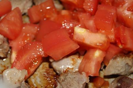 Добавить к мясу, потушить 3-4 минуты.