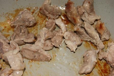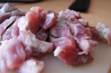 Свинину порезать на кусочки.