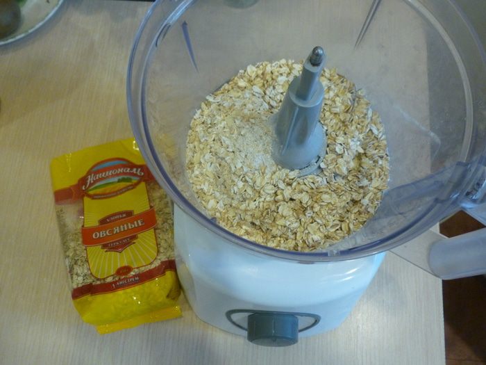 Измельчить овсяные хлопья ТМ «Националь» до консистенции грубой муки, добавить орехи и банан, измельчить.