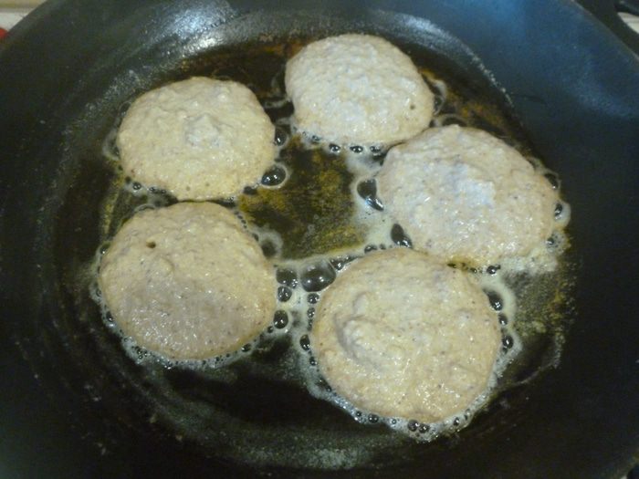 Разогреть в сковороде масло, выкладывать тесто столовой ложкой. Обжарить с двух сторон.