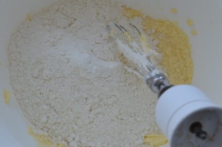 Просеять муку с разрыхлителем и замесить мягкое тесто.