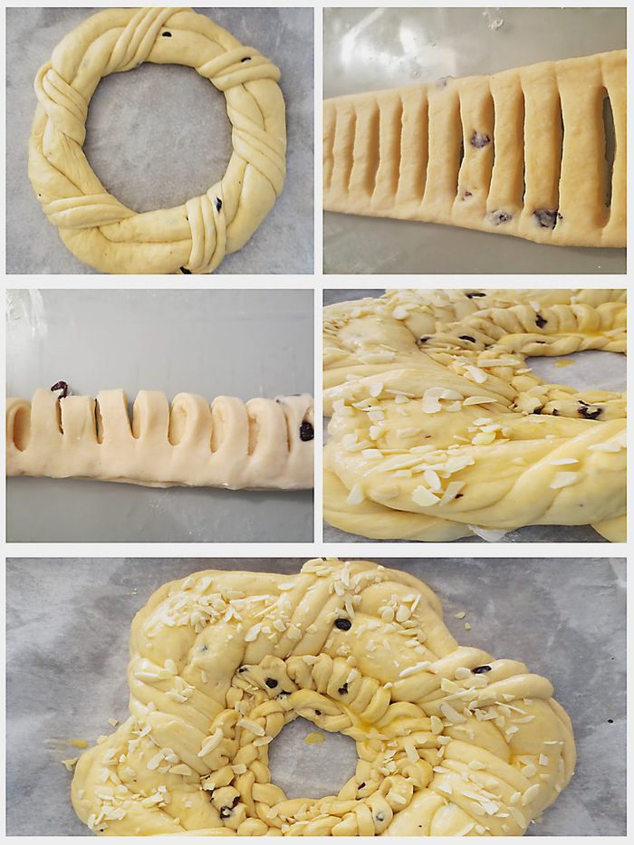 Формируем чуреки. Можно сделать в форме косы, скатав длинные жгуты и затем заплести между собой, формируя косу. После соединить концы . Я сделала немного другой формы, это не принципиально. Изюм также добавляют по желанию.