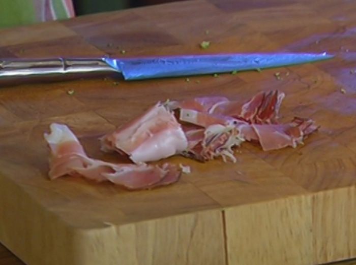Бекон нарезать небольшими кусочками.