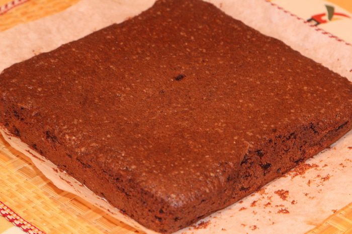 Выпекаем 15-20 минут. Тут тоже ориентируйтесь, пожалуйста сами - время приблизительное. Ни в коем случае нельзя пересушить брауни, иначе он будет очень сухим и станет крошиться. Просто через 15 минут проверьте лучинкой, если сухая, вынимаем.