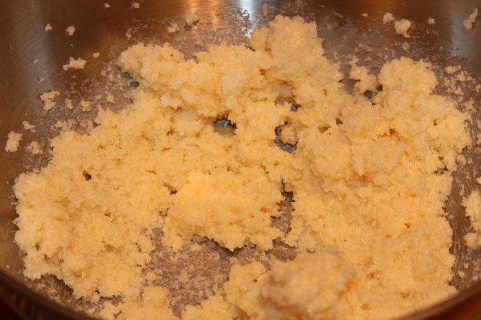 Сливочное масло (сливочный маргарин) взбиваем с сахаром.
