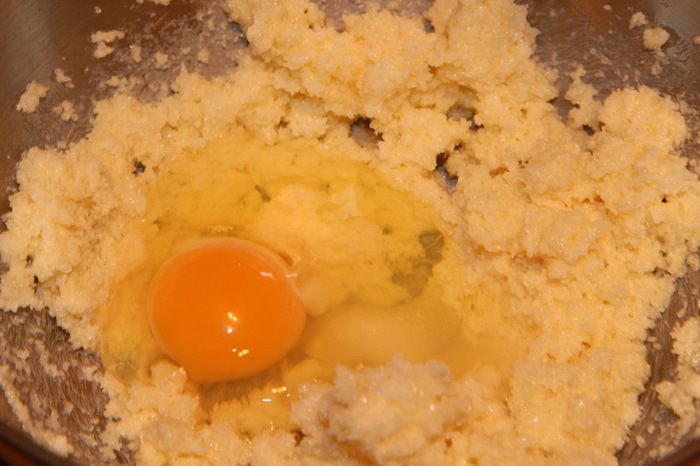 Добавляем яйцо и ванилин (ванильный сахар), взбиваем.