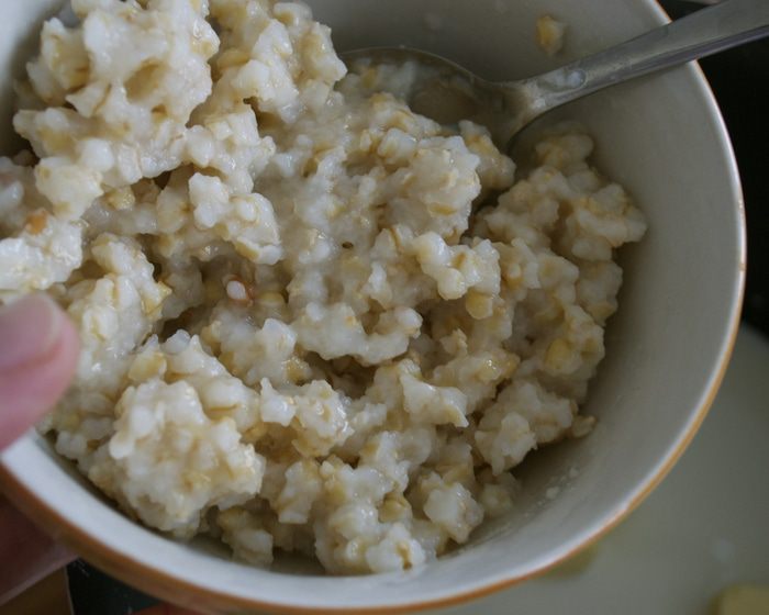 Переложить получившийся крем в большую миску. Добавить вареную в молоке пшеницу.