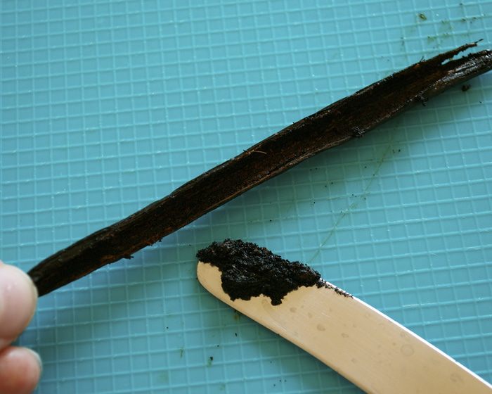 И в крем (как и в тесто) желательно добавить семена настоящей ванили. Для этого надрезать стручок вдоль и с помощью лезвия ножа провести по внутренней "стенке" стручка, собирая все семена. Сам стручок не выбрасываем! Его можно положить в банку с сахаром, закрыть банку крышкой и убрать на хранение. Таким образом у Вас получится сахар с ароматом ванили - ванильный сахар!