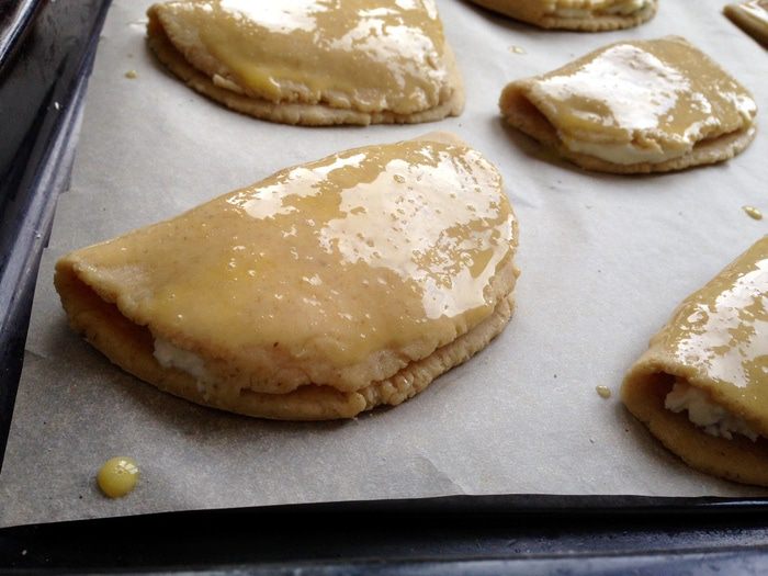 И сложить сочник пополам. Смазать сочники взбитым яйцом и по желанию посыпать сахаром.
