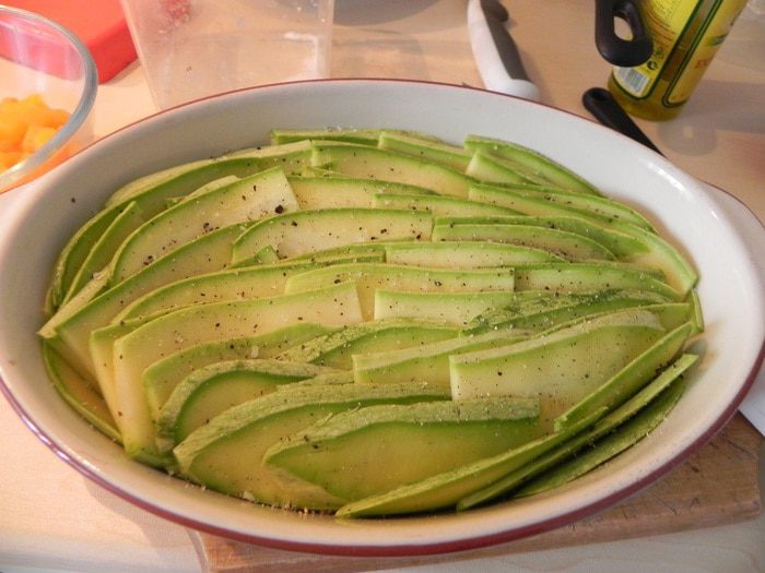 Плотно уложить в форму срезом вверх. Приправить солью и перцем, присыпать травами и измельченным чесноком(даже лучше оставить целые зубчики), сбрызнуть оливковым маслом и поставить в разогретую до 180С духовку на 40 мин. После чего увеличить температуру до 225С и включить гриль, выпекать еще 5-7 мин, до золотистого цвета.