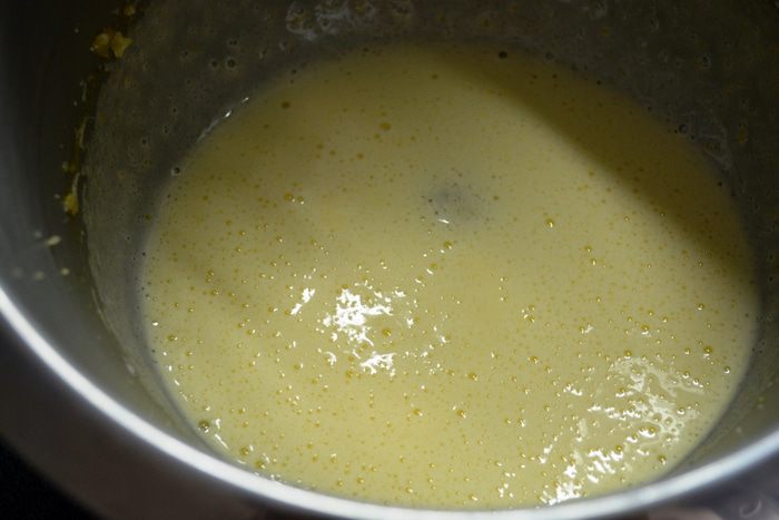 Масло предварительно достаем из холодильника. Яйца взбиваем с сахаром до однородности.