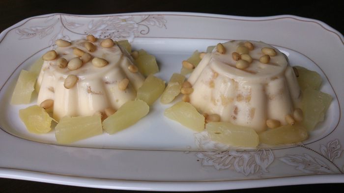При подаче выложить желе из формочек и украсить оставшимися ананасами. Сверху можно еще посыпать орешками. Очень нежный и необыкновенно вкусный десерт.