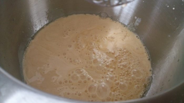 Влить в чашу миксера молоко и взбить, вливая желе.