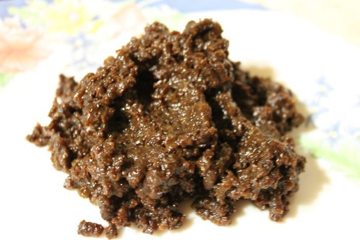 Пока тесто отдыхает займемся начинкой. Изюм промыть, и залить кипятком на 15 минут. Потом перекрутить через мясорубку.