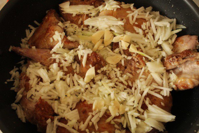 Тушку кролика (1,3-1,5 кг) помыть и обсушить, нарезать порционными кусками (у меня получилось 8 кусков)