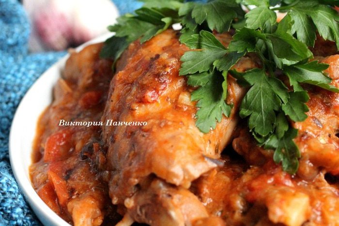 Довести до кипения, убавить огонь до минимума и тушить кролика под крышкой до абсолютной мягкости мяса, примерно 1,5 ч. Подавать горячим с пастой либо с отварным картофелем. Приятного аппетита!!!