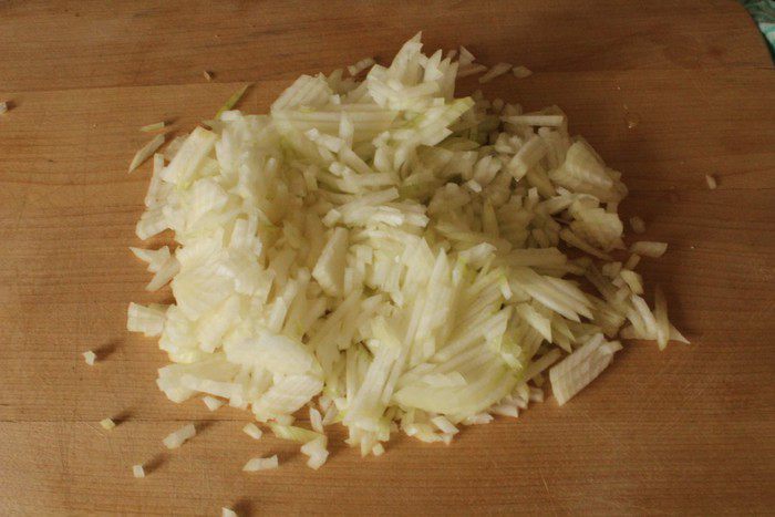 Лук мелко порубить.
