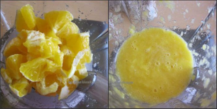 Апельсин очистить от кожуры и косточек, пюрировать в блендере.