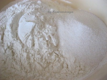 В муку добавить сахар и соль, перемешать.
