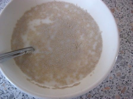 В теплом молоке растворить дрожжи, оставить на 10-15 минут.