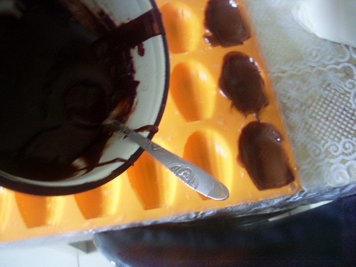 Выложить начинку в формочки - ее как раз на все хватило. Сложить в морозилку на 15 минут.