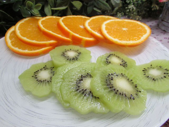Делаем ледяную чашу. Берем две емкости одинаковой формы, но разного размера. В большую наливаем воду небольшим слоем – это будет дно. Отправляем в морозильник, ждем полной заморозки. Затем в эту емкость с уже готовым ледяным дном ставим меньшую и пространство между ними заполняем кружочками апельсинов и киви, добавляем воду. Чтобы верхний салатник не всплывал, я набрала воды. Отправляем конструкцию в морозилку, ждем полной заморозки. Около 5 часов, можно оставить на ночь.